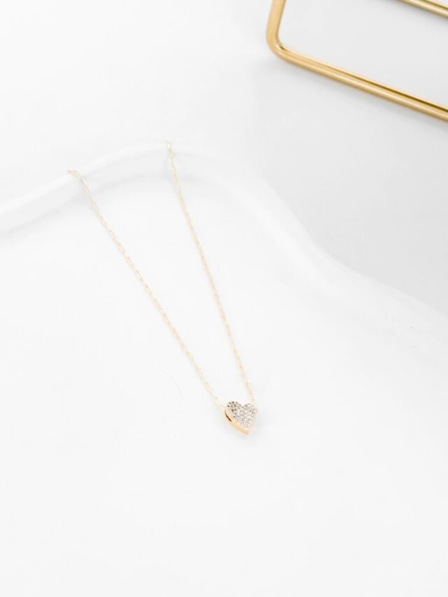 Colar coração tortinho cravejado banhado a ouro